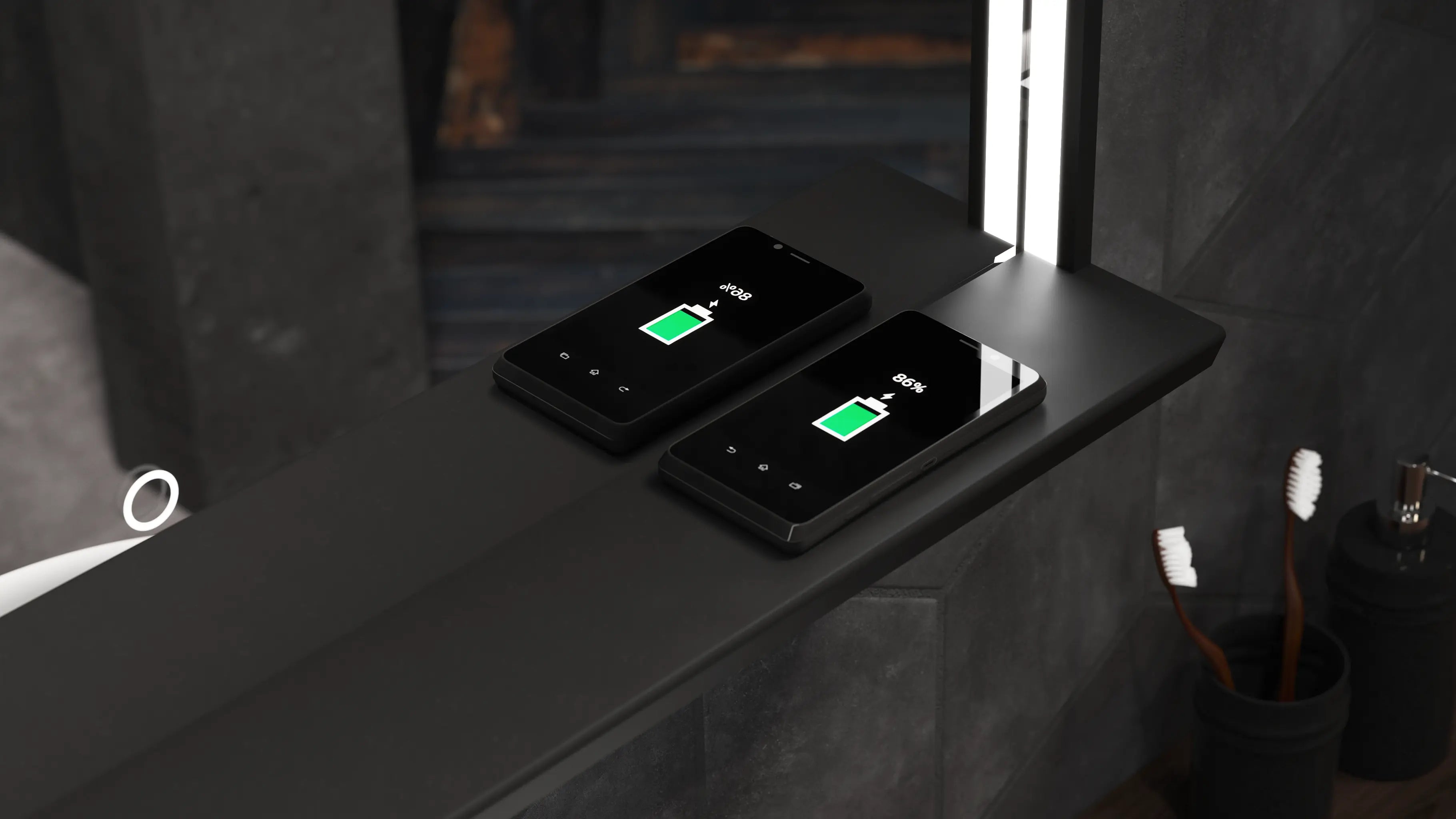 - Front-lit illumination, provides a glare-free light for close up tasks like shaving and makeup application
